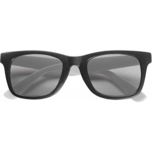 Sunglasses with coloured arms; includes CE mark and UV-400 protection.